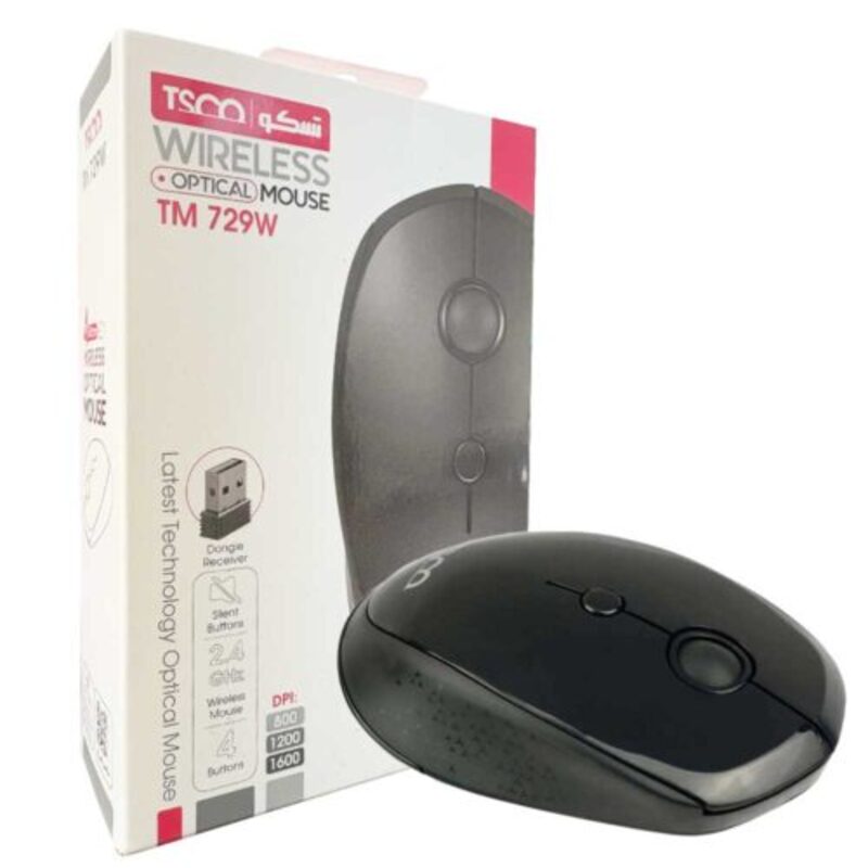 موس TM 729W یک ماوس بی سیم (وایرلس) جمع‌وجور با وزن سبک از شرکت تسکو است و برای استفاده در کنار لپ‌ تاپ یا کامپیوترهای رندر انتخاب بسیار مناسبی است و شما به راحتی می‌توانید آن را درون کیف لپ‌تاپ خود قرار دهید تا همیشه این ماوس را در کنار لپ‌ تاپ خود، به همراه داشته باشید. این ماوس دارای قابلیت منحصر به‌فرد کلیدهای بی صدا «سایلنت» است. ماوس TM 729W تسکو یک ماوس وایرلس 4 کلیده بوده و مکان‌یابی را با استفاده از یک حسگر اپتیکال انجام می‌دهد و قادر است 1600 نقطه در اینچ را مکان‌یابی کند. این ماوس بی‌سیم 4 کلید به علت نوع طراحی خود، ارتفاع بسیار کم و طول کشیده‌ای دارد. این ماوس از یک حسگر اپتیکال بهره می‌برد که قادر است عملکردی سریع و روان را به شما ارائه دهد‏.‏ برای استفاده از این ماوس خوش‌دست، بدون نیاز به نصب هیچ‌گونه نرم‌افزار فقط کافی است فرستنده USB آن را به لپ‌تاپ یا کامپیوتر خود متصل نمایید. همچنین با وجود بهره‌مندی از فرکانس 2٫4 گیگاهرتز می‌توانید بدون قطعی و تداخل، با خاطری آسوده از آن استفاده کنید.